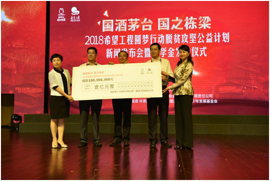 百年大计,教育为本。为有效推进扶贫攻坚战略,习近平总书记提出“治贫先治愚,扶贫先扶智”“落实教育扶贫,切断贫困代际传递”。从2012年开始,中国青基会与茅台集团联合33家省级青基会持续开展“国酒茅台•国之栋梁”希望工程圆梦行动大型公益活动——茅台集团每年向中国青基会捐款1亿元人民币,资助2万名贫困学子,资助标准为每人一次性5000元。